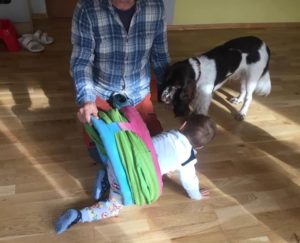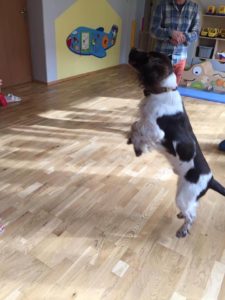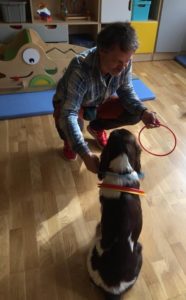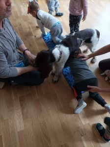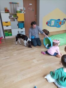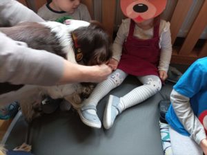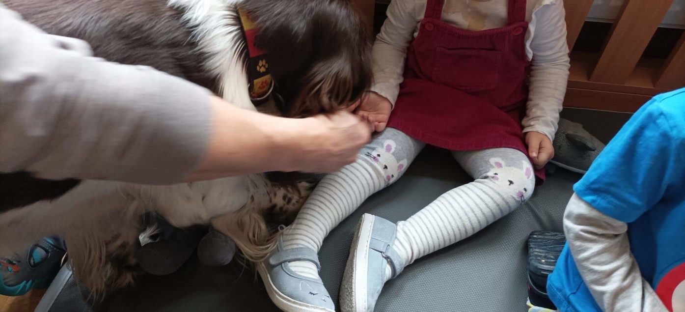 Na zajęciach w żłobku możemy kształtować małą motorykę poprzez zadania manualne, takie jak np. odkręcanie , zakręcanie butelki z wodą dla psa, oraz dużą motorykę przez przechodzenie nad psem i pod psem, czy naśladowanie pozycji zwierzęcia. Możemy zadziałać rozluźniająco, dając mu możliwość położenia głowy na psie, jak również odwrotnie, kiedy to pies kładzie głowę na dziecku. Ćwiczenie to pomaga w wyrażaniu uczuć. Pokonywanie torów przeszkód prowadzących do psa kształtuje równowagę i koordynację. Pies dostarcza dziecku wielu bodźców, co pobudza zmysły. Ma to szczególne znaczenie przy nadwrażliwości i niedowrażliwości. Odbywa się to przez głaskanie zwierzęcia, słuchanie bicia serca, karmienie z ręki oraz lizanie dłoni i stóp małego pacjenta przez psa. Dziecko poprzez takie zadania jak nalewanie wody, czesanie sierści, spacerowanie z psem jest dłużej skoncentrowane na wykonywanej czynności. Nazywając części ciała rozwijamy pamięć i mowę, a wydawanie psu komend dodatkowo zwiększa poczucie wartości dziecka. Kontakt ze zwierzęciem powoduje uzewnętrznienie pozytywnych emocji, a dzieci stają się bardziej otwarte.
